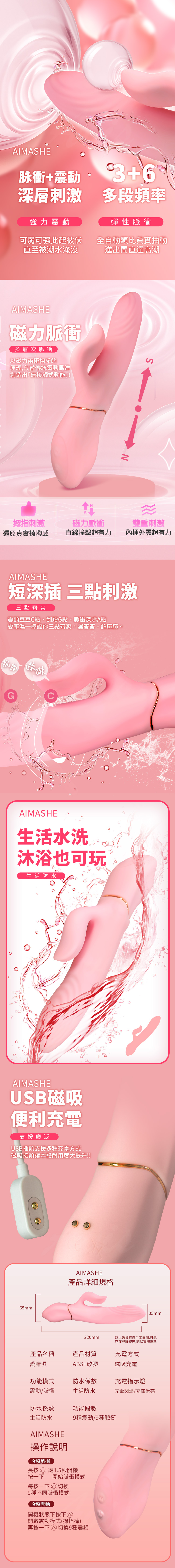 產品名:愛嘛濕磁力脈衝震動棒(短深插活塞式按摩棒)
